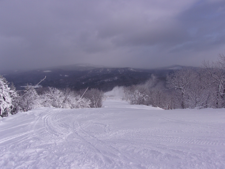 Photo above taken by our New England correspondent Sam Shirley, who enjoyed some fabulous powder yesterday at Ragged Mountain, NH. Ragged is one of those under-appreciated gems that is sort of in the shadows of some slightly larger, more popular neighbors. But as you can see, when it’s on, it’s on!