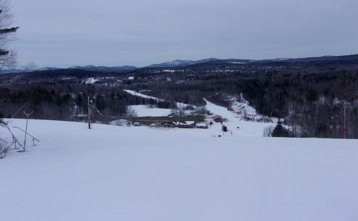 I stopped by Titcomb for about an hour and a half while in Farmington. There was a ton of snow and all trails were open. They were only running the #2 T-bar, but it was pretty busy and there was sometimes a short wait to get on. The snow was heavy packed powder with wet powder in the woods. It’s a fun area with more terrain variety than would be expected from an area of that size. There’s excellent novice terrain, a good terrain park, an area of moguls, glades, and tough steeps.